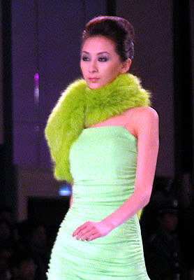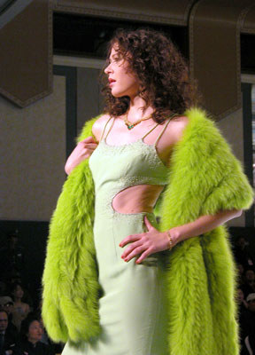 中國(guó)國(guó)際時(shí)裝周NE·TIGER 2003/2004高級(jí)皮草晚裝,湖水綠個(gè)性色系列。