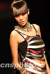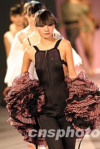 十一月二十二日,中國(guó)國(guó)際時(shí)裝周柏仙多格·王玉濤專場(chǎng)時(shí)裝表演在北京中國(guó)大飯店進(jìn)行,模特身著性感時(shí)裝,演繹著服裝設(shè)計(jì)師的性感路線。中新社記者:盛佳鵬