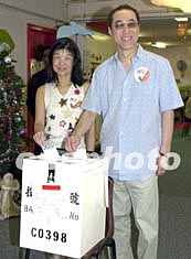 中新社香港十一月二十三日電(記者陶社蘭)香港特區(qū)第二屆區(qū)議會選舉今天舉行,港九新界四百二十三個票站今早七時三十分至晚上十時三十分開放,供二百四十余萬名選民投票。行政長官董建華等特區(qū)高官參加投票。