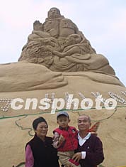 由中國、俄羅斯、日本、美國等七個(gè)國家的十余名沙雕藝術(shù)家創(chuàng)作的風(fēng)格各異的沙雕作品近日在?谖骱0墩秸钩。其中航天英雄楊利偉的沙雕形象吸引眾多市民紛紛合影。中新社記者:王辛莉