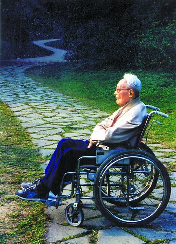 但也正是由于在完成《隨想錄》一百五十多篇寫作后,巴金仍不曾放下他那堅強的筆桿,他在九十歲(1994)以后身體確實越來越顯得衰老了,不僅頭發(fā)全白,他那老年性慢性支氣管炎更加嚴(yán)重,“文革”結(jié)束后不久就患上的帕金森氏病更使他行動受到影響,連筆也愈來愈不聽使喚;同時由于身體嚴(yán)重缺鈣,引起胸脊椎骨折和體位性血壓波動。他在八十年代中期還可以站在特制的圈車?yán)镒邉,而現(xiàn)在只好坐在輪椅上過日子;當(dāng)然,每天幾乎有一半時間還是躺在床上。