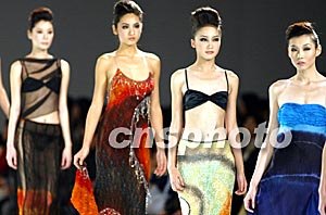 嚴(yán)德良(新加坡)時(shí)裝發(fā)布會(huì)二十五日在北京舉行的中國(guó)國(guó)際時(shí)裝周上亮相,模特身著設(shè)計(jì)新穎的絲綢服裝展示女性的婉約美麗。中新社記者:毛建軍