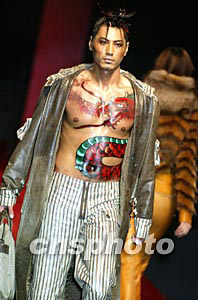 喜得龍.計文波時裝發(fā)布會二十五日晚在中國國際時裝周上舉行,一名男模特身繪火龍出場,寓意中國時裝品牌發(fā)展的龍馬精神。中新社記者:毛建軍