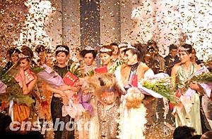 十一月二十六日晚,2003中國國際時裝周頒獎典禮在北京中國大飯店舉行,最佳職業(yè)時裝模特、最佳造型師、中國時裝設計“金頂獎”等眾多獎項各歸其主,為期一周的時裝盛會在歡笑中閉幕。中新社記者:盛佳鵬