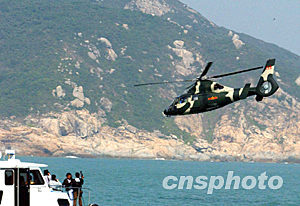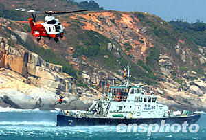 今天的演習由民航處籌辦,于南丫島東澳灣舉行,百多人參加。演習分三部分進行,包括由政府飛行服務隊和民眾安全服務處聯(lián)合在東澳灣山邊進行拯救,并由政府飛行服務隊派出超級美洲豹AS332L2型直升機示范在甲板吊救模擬傷者,消防處的潛水隊伍隨即示范海上搜救。最后,駐港部隊派出一架“直九”直升機進行空中搜索示范,結束整項短程演習。