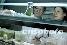 聯(lián)合國糧農(nóng)組織首席顧問、中國著名雜交水稻專家袁隆平院士,十一月在湖南長沙郊外的雜交水稻研究中心實驗室研究雜交水稻,水稻畝產(chǎn)實現(xiàn)八百公斤后,提高到九百公斤是袁隆平院士的新目標(biāo)。據(jù)悉,水稻畝產(chǎn)從六百公斤提高到八百公斤已是一個世界性的難題。中新社記者:張宇