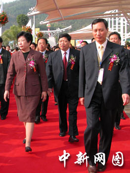 福建省委副書記、省紀委書記梁綺萍(左),漳州市委書記袁榮祥等出席今天開幕式。中新社記者余瑞冬攝