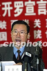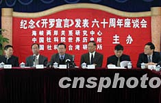 海峽兩岸關(guān)系研究中心、中國社科院世界歷史所、中國社科院臺灣研究所共同主辦的紀(jì)念《開羅宣言》發(fā)表六十周年座談會十二月一日在北京舉行。近二十位專家學(xué)者與會,重申臺灣是中國領(lǐng)土,主權(quán)歸屬不容更改。圖為國臺辦副主任、海研中心顧問王在希(左三)在會上發(fā)言。作者:張勤