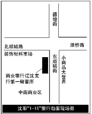 鬧事區(qū)里爆炸搶劫銀行案件的發(fā)生,在遼寧省已不是第一起。今年1月18日傍晚,發(fā)生在沈陽市大東區(qū)東順城街151號(hào)的“1·18”搶劫銀行運(yùn)鈔車案件的地點(diǎn)同樣位于繁華的商業(yè)區(qū)!1·18”案件現(xiàn)場(chǎng)的對(duì)面是人頭攢動(dòng)的小商品大世界,北側(cè)是車流如織的交通十字路口,身后則是繁華的裝飾材料大市場(chǎng),再往南側(cè)是著名的中街商業(yè)區(qū)。