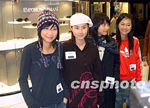 香港流行音樂組合Cookies為品牌眼鏡宣傳。一個品牌眼鏡5日展示2004年春夏眼鏡系列,香港流行音樂組合Cookies 出席記者會為其宣傳。中新社記者:譚達明  香港藝人楊婉儀5日在一品牌眼鏡記者會時,戴上新款眼鏡。中新社記者:譚達明
