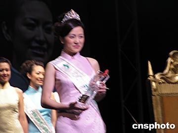 2003年度悉尼華裔小姐競(jìng)選6日晚揭曉:20歲的江蘇姑娘,悉尼科技大學(xué)學(xué)生王云仙摘得華裔小姐和最上鏡小姐兩項(xiàng)桂冠;22歲的香港姑娘,悉尼科技大學(xué)學(xué)生林嘉琪和20歲的大連姑娘,悉尼大學(xué)學(xué)生欒諾分別獲得華裔小姐亞軍和季軍。在澳洲出生的22歲的陳慧玲被選為友誼小姐。中新社記者 劉雨生 攝影報(bào)道