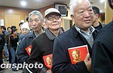 一代偉人毛澤東誕辰110周年前夕,百余名購(gòu)買(mǎi)了紀(jì)念毛澤東書(shū)籍的北京市民在王府井圖書(shū)大樓排成長(zhǎng)隊(duì),靜靜地等候毛澤東之孫毛新宇的簽名,以寄托對(duì)毛澤東的深情懷念。中新社記者:史利