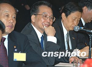 美東時(shí)間十二月七日下午,中國(guó)總理溫家寶甫抵紐約,即接見(jiàn)華僑華人、留學(xué)生和中資機(jī)構(gòu)代表。溫家寶說(shuō),大家冒著嚴(yán)寒風(fēng)雪,守候在這里好幾個(gè)小時(shí),歡迎我和我的同事。大家的這份情意,不僅是給我和同事的,更是給祖國(guó)和人民的。他代表中國(guó)人民和中國(guó)政府,向旅居在美國(guó)的華僑、華人、留學(xué)生,向來(lái)自香港、澳門(mén)和臺(tái)灣的同胞,向領(lǐng)館的工作人員,致以親切的問(wèn)候和良好的祝愿。隨后他向前方和左右三鞠躬,感謝僑胞們的熱情歡迎。作者:陳建