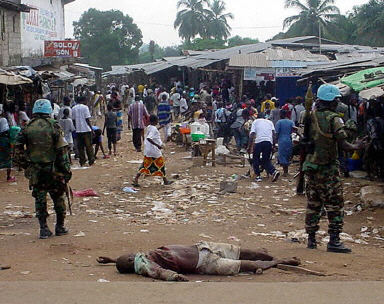 9名擁護泰勒的前政權(quán)武裝分子在與維和部隊的交火中喪生,其他死者為平民,另有1名貝寧籍維和士兵受傷。