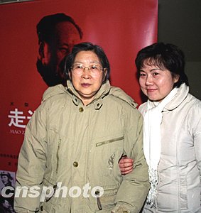十二月十一日下午,《走近毛澤東》全國首映式在北京大學百年紀念大講堂隆重舉行,毛澤東的女兒李敏出席首映式并與導演艾欣合影留念。作者:徐曦弋