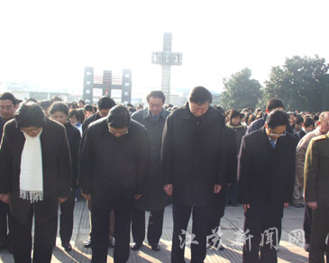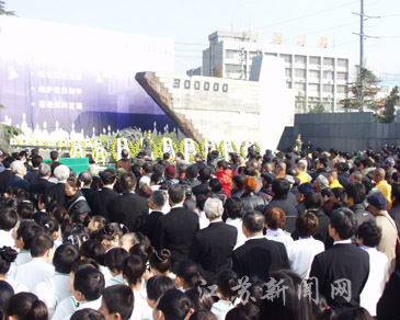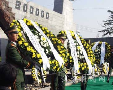 今天,江蘇省暨南京市各界人士,以及部分國外友好團體的代表、友好人士、港臺愛國同胞共3000余人,在侵華日軍南京大屠殺遇難同胞紀念館隆重悼念南京大屠殺30萬同胞遇難66周年,并舉行了南京國際和平集會。
