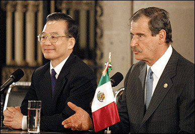 溫家寶指出,中墨都是重要的發(fā)展中大國,發(fā)展長期友好合作關系不僅符合兩國人民的根本和長遠利益,而且對促進南南合作,提高發(fā)展中國家的整體實力,推動建立公正合理的國際新秩序具有重要的現(xiàn)實意義。雙方都有從戰(zhàn)略高度進一步推動兩國關系發(fā)展的強烈愿望。我完全贊同閣下關于“墨中是合作伙伴,不是競爭對手”、“兩國關系面臨獨特、戰(zhàn)略性的良好機遇”的判斷。經(jīng)過雙方磋商,我們今天正式宣布建立中墨戰(zhàn)略伙伴關系。現(xiàn)我就如何充實這一戰(zhàn)略伙伴關系提出以下建議:第一,成立中墨政府間常設委員會,負責指導和協(xié)調(diào)雙方在各個領域的合作。第二,繼續(xù)擴大政府、議會、政黨、民間團體的交流,充分發(fā)揮兩國現(xiàn)有外交磋商、經(jīng)貿(mào)、文教和科技混委會四大機制的作用。第三,推動兩國經(jīng)貿(mào)多元化發(fā)展。中國政府鼓勵有實力、信譽好的企業(yè)到墨西哥投資辦廠,也歡迎墨西哥的企業(yè)來中國投資。通過企業(yè)聯(lián)合,實現(xiàn)優(yōu)勢互補,共同開拓國際市場;中方愿擴大從墨的進口,同時雙方也應盡早簽署投資保護、避免雙重征稅等協(xié)定。第四,深化文教、科技領域的交流。中方正在積極考慮將墨西哥列為中國公民旅游目的地國,并建議雙方積極考慮在對方設立文化中心。我們支持明年下半年在中國召開第5次政府間科技合作混委會并商簽新的科技合作計劃。第五,繼續(xù)加強在多邊事務中的磋商與協(xié)調(diào),共同維護發(fā)展中國家權益,為世界的和平與發(fā)展事業(yè)作出貢獻。