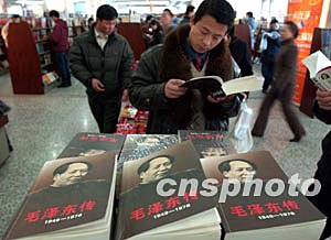 十二月十四日,一名顧客在北京西單圖書(shū)大廈翻閱最新出版的《毛澤東傳(1949——1976)》。為紀(jì)念毛澤東同志誕辰110周年,該書(shū)本月中旬開(kāi)始在全國(guó)發(fā)行,中共中央文獻(xiàn)研究室撰寫(xiě)和編輯了此書(shū)。中新社記者:張煒