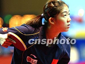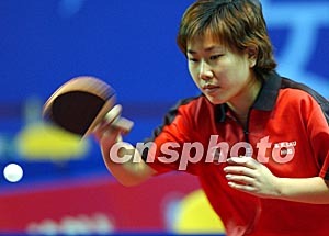 香港選手柳絮飛在二零零三年女子世界杯乒乓球賽十二月十八日進(jìn)行的賽事上以4:0擊敗羅馬尼亞選手巴蒂斯庫。中新社記者:錢興強(qiáng)