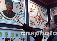 毛澤東誕辰110周年紀念日即將來臨,甘肅省會蘭州市博物館中23日展出了一萬余枚,五千多個品種、不同年代的毛澤東像章。作者:劉呈軍