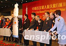 迎圣誕節(jié)之際,特備展覽“中國(guó)首次載人航天飛行展Ⅱ--給香港的禮物”十二月二十三日在香港科學(xué)館開(kāi)幕,其中最珍貴的展品包括楊利偉的工作訓(xùn)練服以及香港特區(qū)和珠江三角洲衛(wèi)星圖等。圖為展覽開(kāi)幕啟動(dòng)儀式。中新社記者:錢(qián)興強(qiáng)