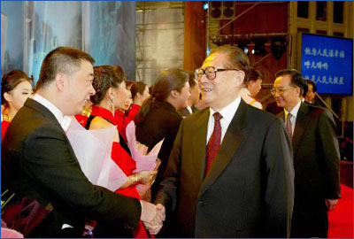 音樂會(huì)結(jié)束后,江澤民、溫家寶、曾慶紅、吳官正、李長(zhǎng)春等黨和國(guó)家領(lǐng)導(dǎo)人走上舞臺(tái),與參加演出的演員親切握手,祝賀演出成功。