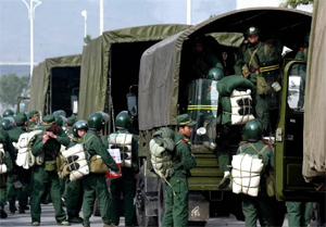圖:武警開赴“12·2 3”井噴事故搶險救災(zāi)現(xiàn)場