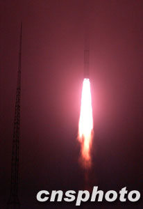 一連串短促清脆的指令發(fā)出后,金牌火箭“長(zhǎng)征二號(hào)丙”改進(jìn)型運(yùn)載火箭噴射出桔紅色的熊熊烈焰,在驚天動(dòng)地的呼嘯聲中沖天而起,托舉著“探測(cè)一號(hào)”衛(wèi)星向九霄云外飛去。火箭越飛越高、越飛越遠(yuǎn),只一霎那功夫,就從人們的視線中消失了。