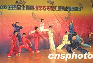 中新社長沙十二月二十九日電(殷敏鴻 鄧霞)二十九日上午,在湖南師大音樂學(xué)院演奏廳舉行了印尼華裔青少年中國民族舞蹈及中華武術(shù)冬令營匯報(bào)演出暨閉營式,伴隨著悠揚(yáng)的音樂,小營員們身著中國傳統(tǒng)民族服裝,像模像樣地向臺下的中國觀眾表演了八天來在中國學(xué)到的民族舞蹈和中國功夫,博得陣陣熱烈掌聲。