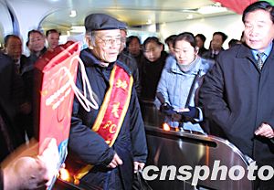 北京地鐵13號(hào)線自動(dòng)收費(fèi)系統(tǒng)(簡(jiǎn)稱AFC系統(tǒng))三十一日早晨五點(diǎn)半正式開(kāi)通,作為新系統(tǒng)的第一位乘客七十歲的老人洪先生身披紅色綬帶通過(guò)了地鐵自動(dòng)檢票閘機(jī)口。中新社記者:廖文靜