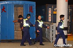 元旦凌晨,「內(nèi)地與香港關(guān)于建立更緊密經(jīng)貿(mào)關(guān)系的安排」正式實施。香港海關(guān)已做好兩地貨物的通關(guān)監(jiān)管程序,圖為落馬州海關(guān)凌晨檢查貨物。作者:潘索菲