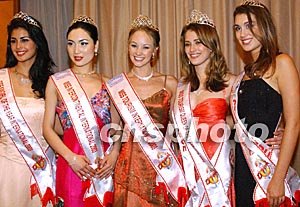 日前,在馬來(lái)西亞首都吉隆坡舉行的第八屆國(guó)際旅游小姐選美總決賽上共評(píng)出五項(xiàng)冠軍,大賽組委會(huì)主席向記者闡明,國(guó)際旅游小姐選美賽不同其它選美賽事,組委會(huì)現(xiàn)持有五項(xiàng)馬來(lái)西亞旅游部授權(quán)的大賽執(zhí)照,是次大賽由評(píng)判團(tuán)評(píng)出的有五項(xiàng)冠軍桂冠,南非的選手ANGELA BECK獲國(guó)際旅游小姐冠軍、希臘小姐獲國(guó)際旅游年度皇后冠軍、中國(guó)選手邢會(huì)原獲世界洲際小姐冠軍、阿根廷選手獲夢(mèng)幻小姐冠軍、捷克選手獲國(guó)際名城小姐冠軍。而且經(jīng)授權(quán),國(guó)際旅游年度皇后和國(guó)際名城小姐兩項(xiàng)賽事,已確定2004年分別在中國(guó)舉行。曾于2001年參加該賽的中國(guó)佳麗閻巍獲得夢(mèng)幻小姐冠軍,2002年中國(guó)佳麗殷子獲得國(guó)際旅游年度皇后桂冠。圖為大賽評(píng)選出的獲得不同項(xiàng)目的五名冠軍得主。中新社記者:錢(qián)興強(qiáng)