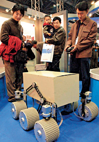 從二○○○年五月開始,哈爾濱工業(yè)大學就著手開始進行月球探測車的研制及相關技術的研究,已經(jīng)研制出了三種類型的月球探測車原理樣機。