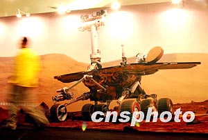 美國“勇氣”號機器人漫游者日前成功登陸火星后,北京一商廈適時展出相關(guān)照片,廣受市民歡迎。中新社記者:武仲林