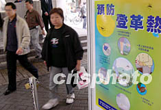 一月七日,香港衛(wèi)生署證實(shí)一宗外地傳入登革熱個(gè)案,并呼吁市民提高警覺(jué)預(yù)防。圖為鬧市街頭預(yù)防登革熱宣傳處處可見(jiàn)。作者:潘索菲