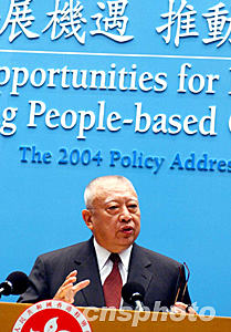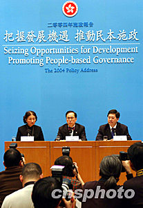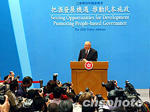 一月七日,香港行政長官董建華在立法會發(fā)表施政報告后,舉行記者會。作者:潘索菲