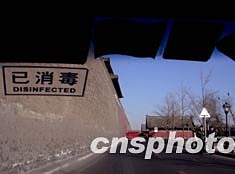 一月上旬,一輛車(chē)窗上貼著“已消毒”標(biāo)志的出租車(chē)駛過(guò)北京故宮墻外。連日來(lái),北京的出租車(chē)為預(yù)防SARS卷土重來(lái),紛紛采取消毒措施,希望乘客放心乘坐。中新社記者:賈國(guó)榮