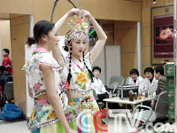 在演唱類(lèi)節(jié)目候場(chǎng)區(qū),記者同時(shí)見(jiàn)到了林依倫、蔣勤勤等人,他們正在熱烈地探討著什么,這讓記者有些摸不著頭腦,“他們?cè)摬粫?huì)一起搞聯(lián)唱吧?”正在內(nèi)心嘀咕,看林依倫一個(gè)人走到了旁邊,記者立即抓住時(shí)機(jī)上前詢問(wèn)起來(lái)。“我去年作了一部音樂(lè)劇,導(dǎo)演覺(jué)得挺好,所以就來(lái)了。音樂(lè)劇名字叫做《陽(yáng)光健身房》,在這出音樂(lè)劇中,我將出任一名健身教練,與蔣勤勤等人合演!绷忠纻惖绞且稽c(diǎn)也不避諱,快言快語(yǔ)的。問(wèn)及林依倫今年是第幾次參加春節(jié)晚會(huì),有什么新感受時(shí),林依倫歪著頭想了一下回答說(shuō):“第七次,最大的感受是今年又不能跟家人一起過(guò)年了。本來(lái)已經(jīng)想好今年要跟家人一起在家過(guò)年的,但看來(lái)這個(gè)愿望又要落空了!