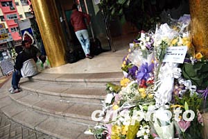 香港著名藝人梅艷芳喪禮將于1月11日在香港殯儀館設靈, 12日出殯,10日香港歌迷在殯儀館外擺放鮮花,向一代香港歌后梅艷芳深深悼念。