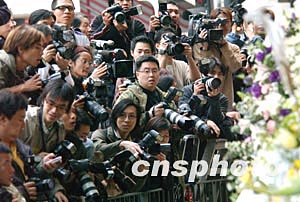 圖:眾多傳媒匯集殯儀館報(bào)道梅艷芳喪禮