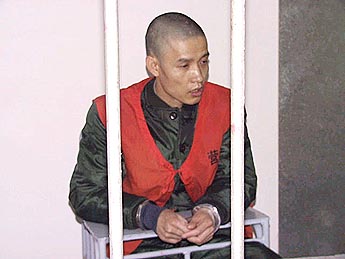 昨日下午4點40分,記者在營口刑警和營口看守所干警的陪同下,來到營口看守所第四提審室。稍后,戴著手銬和腳鐐的林學雄在兩名刑警的押解下,步入提審室。身著紅色囚服的林學雄的頭發(fā)已經(jīng)剃掉。在他于1月9日下午1時許全面崩潰后即轉入刑拘狀態(tài)。