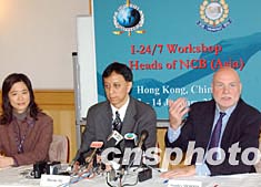 香港警方及國(guó)際刑警組織秘書處于元月十三日在港聯(lián)合舉辦“國(guó)際刑警全球聯(lián)絡(luò)系統(tǒng)I-24/7”訓(xùn)練課程及工作坊開幕儀式,該系統(tǒng)為國(guó)際刑警各分局進(jìn)行了技術(shù)革新,提供一個(gè)更加安全有效,并且更符合成本效益的通訊系統(tǒng),以供亞洲地區(qū)中心局的警務(wù)人員參加。圖為國(guó)際刑警組織秘書處負(fù)責(zé)有關(guān)聯(lián)絡(luò)系統(tǒng)的主管Stanley morris(右一)在儀式上向傳媒介紹有關(guān)情況。作者:錢興強(qiáng)