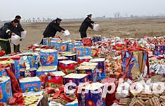 一月十四日,北京警方再次將依法收繳的2203萬余件、銷售價(jià)值達(dá)144萬元人民幣的非法、偽劣、超標(biāo)的煙花爆竹進(jìn)行集中銷毀,以表示警方打擊非法私運(yùn)、販運(yùn)、銷售煙花爆竹的決心不變。作者:李連杰