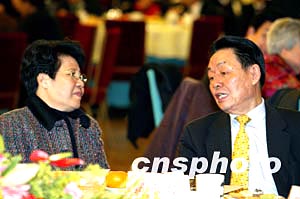 2004年僑界新春茶話會十四日在北京人民大會堂舉行,國務(wù)院僑務(wù)辦公室主任陳玉杰與全國政協(xié)港澳臺僑委員會主任郭東坡等出席。中新社記者:毛建軍