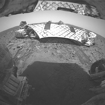 探測器成功從降落架的三米長的斜坡落道火星紅色的泥土上。專家一般認(rèn)為這是這次任務(wù)其中最危險的一步。