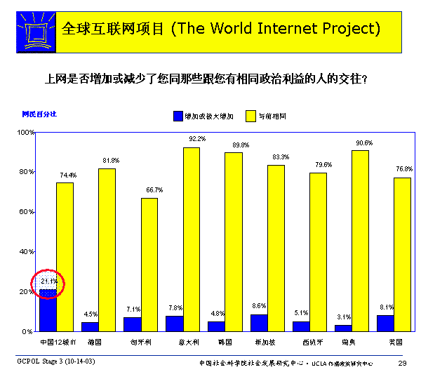 歡迎引用本調(diào)查報告的數(shù)據(jù)、圖表和結(jié)論。在所有引用本報告數(shù)據(jù)、圖表和結(jié)論的地方必須注明來源:“中國社會科學院社會發(fā)展研究中心2003年關(guān)于中國12城市互聯(lián)網(wǎng)使用狀況及影響的調(diào)查報告”或簡稱“中國社會科學院社會發(fā)展研究中心2003年互聯(lián)網(wǎng)報告”。