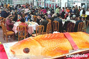 元月二十日農(nóng)歷年廿九,廣州市市長(zhǎng)張廣寧、市政協(xié)主席陳開(kāi)枝等市負(fù)責(zé)人前往廣州老人院探望住在這里的近八百名老人,并與老人們共進(jìn)團(tuán)年飯。一條寓意“年年有余”的大魚(yú)為老人院增添了很多歡樂(lè)氣氛。作者:羅仰明