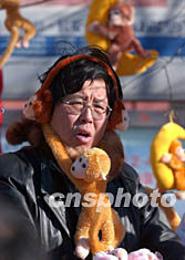 春節(jié)期間,北京各大廟會熱鬧非凡,一名賣猴玩具的小販正忙碌著在廟會上淘金!鞍萆瘛①徫、娛樂”是人們逛廟會的主要活動,廟會上旺盛的人氣帶動了獨(dú)特的廟會經(jīng)濟(jì)。中新社記者:張煒
