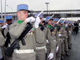 法三軍儀仗隊在做歡迎胡錦濤主席的準(zhǔn)備