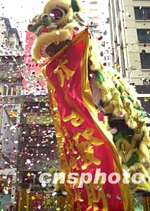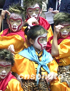 香港時(shí)代廣場(chǎng)元月二十七日舉行十周年慶典活動(dòng),為隆重其事特安排“甲申猴年金猴鬧獅賀新春”表演,圖為“群猴賀禧”。作者:錢(qián)興強(qiáng)